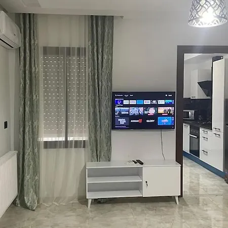 Ein Kühlschrank und ein Herd sind in einer kompletten Küche vorhanden. Die Gäste des Apartments können einen komfortablen Aufenthalt genießen, da es Ausstattung zur Kaffee- & Teezubereitung gibt. Der nächstgelegene Flughafen Tunis-Carthage ist 10 km vom Apartment entfernt, und die Bushaltestelle Cite Essalem ist in 10 Minuten fußläufig von hier aus zu erreichen.